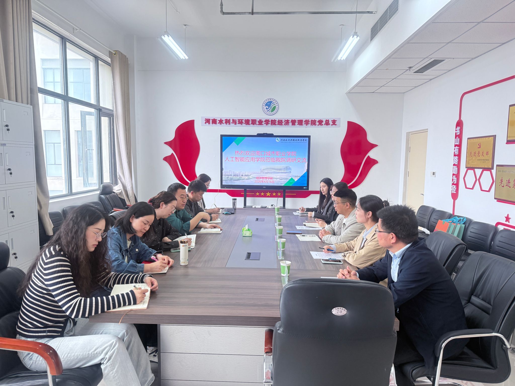 为深化职业院校间合作,共享专业建设与产教融合经验,推动物流、电商、人工智能等专业高质量发展,4月16日,周口城市职业学院人工智能应用学院院长顾昕伟一行到访经济管理学院开展考察交流。经济管理学院党总支书记陈文、负责人张宝华及相关教研室主任、教师热情接待并参与交流。