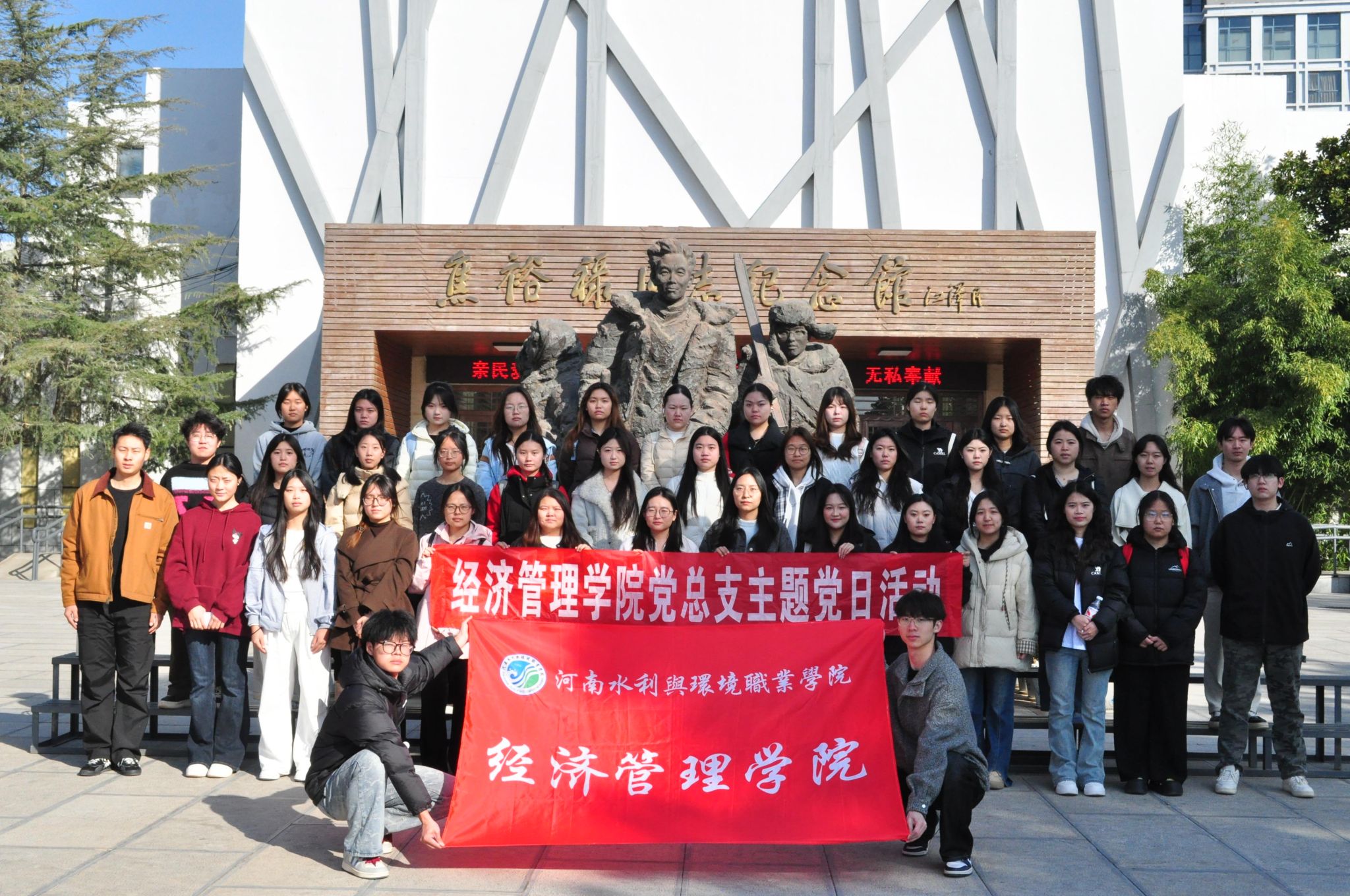 2025年11月22日,经济管理学院党总支组织教师党员、入党积极分子与学生干部,赴开封市兰考县,开展“兰考研学拓视野,笃学笃行砺初心”主题党日活动,在实地感悟中传承焦裕禄精神,在红色浸润中锤炼青年担当。