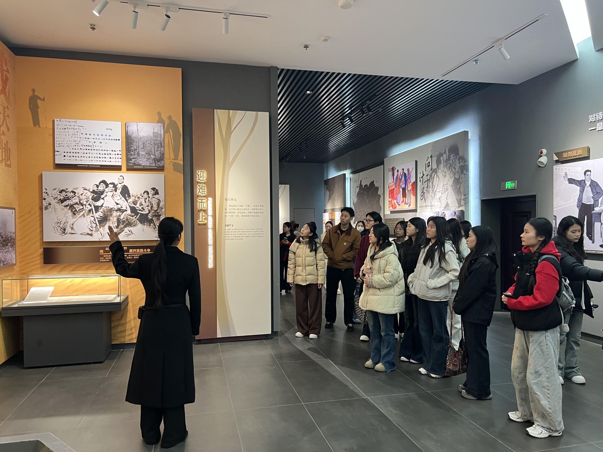 随后,大家前往兰考县展览馆,在“历史沿革”“脱贫攻坚”“乡村振兴”等展区,通过文字史料、图片展板、实物陈列、多媒体演示等多种形式,全方位探寻兰考从昔日“三害”肆虐的贫困县,到如今实现脱贫摘帽、迈向高质量发展的蝶变之路。从风沙盐碱地到绿水青山,从贫困落后到安居乐业,学子们直观感受在党的坚强领导下,兰考人民传承弘扬焦裕禄精神、艰苦奋斗铸就的辉煌成就,进一步坚定了听党话、跟党走的信念,让红色教育的意义愈发厚重。