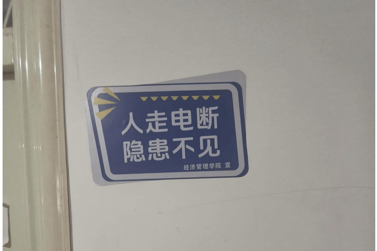 在消防安全宣传方面,学院精心制作了印有“消防安全 人人有责”的专题警示卡片,明确列出“严禁私拉乱接电线”“严禁使用违章电器”等六项宿舍消防安全禁令。同时,在宿舍公共区域及醒目位置张贴“小小烟头 隐患巨大”“拒绝违章电器 守护宿舍平安”等主题鲜明的趣味警示贴,以直观生动的方式警示火灾风险,引导学生规范用电用火行为。