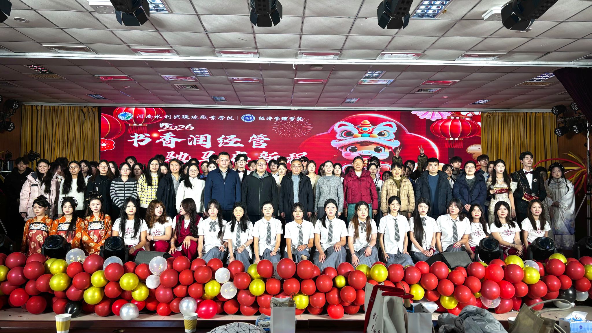 12月23日晚,经济管理学院“书香润经管 驰马启新程”2026年元旦晚会暨反诈主题晚会在德礼讲堂温情开演。学校相关部门及各二级学院负责人与经济管理学院师生代表共聚一堂,在异彩纷呈的节目展演中喜迎元旦,在生动鲜活的反诈宣传中筑牢防线,现场欢声阵阵、暖意浓浓,节日的祥和与反诈的警醒氛围相映成趣。