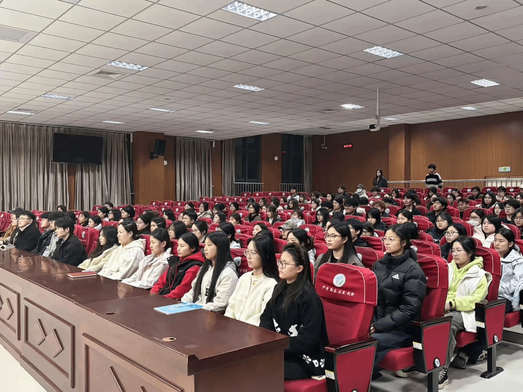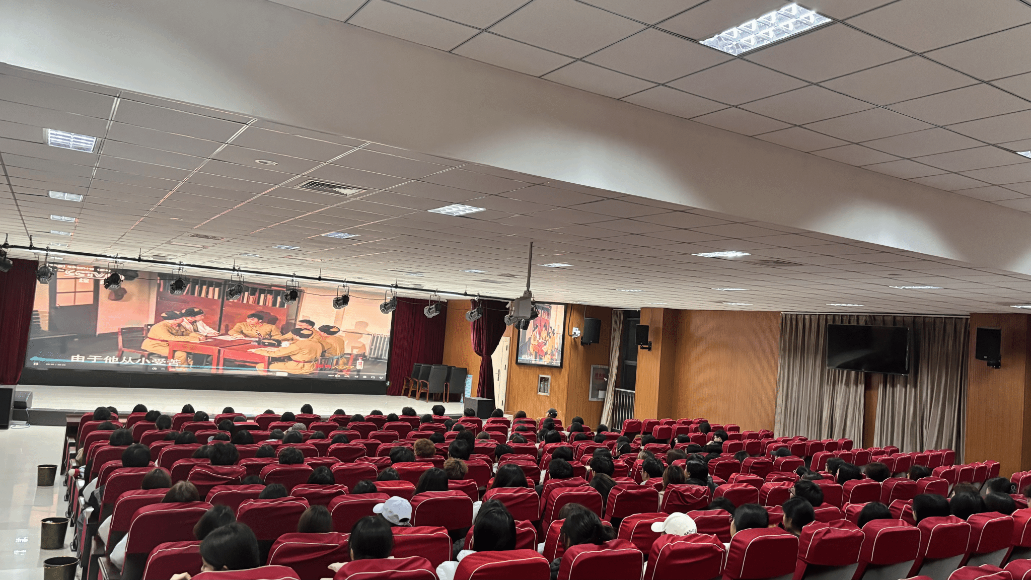 本次主题党课通过戏剧演绎与访谈相结合的形式,生动再现了雷锋同志短暂而光辉的一生。影片讲述了雷锋同志从鞍钢推土机手到部队汽车兵的成长历程,生动展现了他干一行爱一行、专一行精一行的敬业精神,以及勤俭节约、助人为乐、无私奉献的高尚品格。观影过程中,现场秩序井然,同学们神情专注,深受感染。