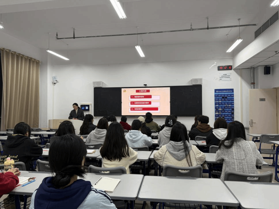 2025年10月27日19点,经济管理学院在博思413教室为2025年下半年入党积极分子举办了一场意义深刻的党课,学院党总支副书记李佳颖担任主讲人。